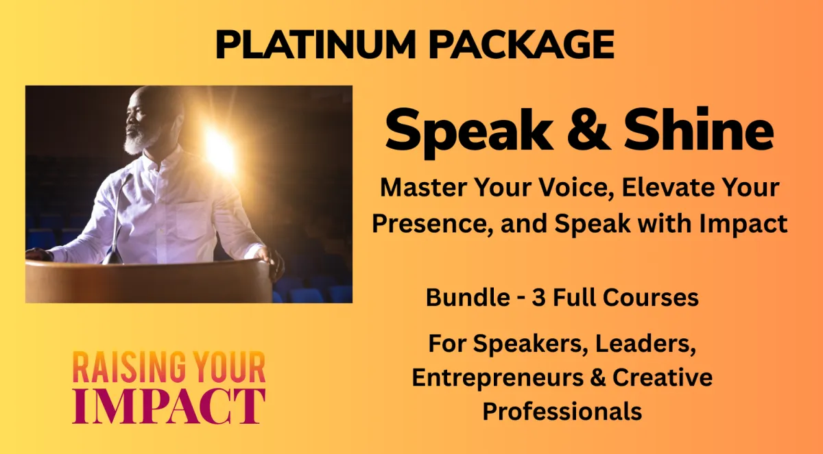 Below are transformative Courses in Voice & Performance Empowerment tailored for leaders, speakers, creative professionals, actors, and voice-over artists. Discover and refine your authentic voice while mastering communication techniques to become a confident and influential communicator across various platforms. Unlock your potential, elevate your expertise, and make thhe impactful impression you desire.